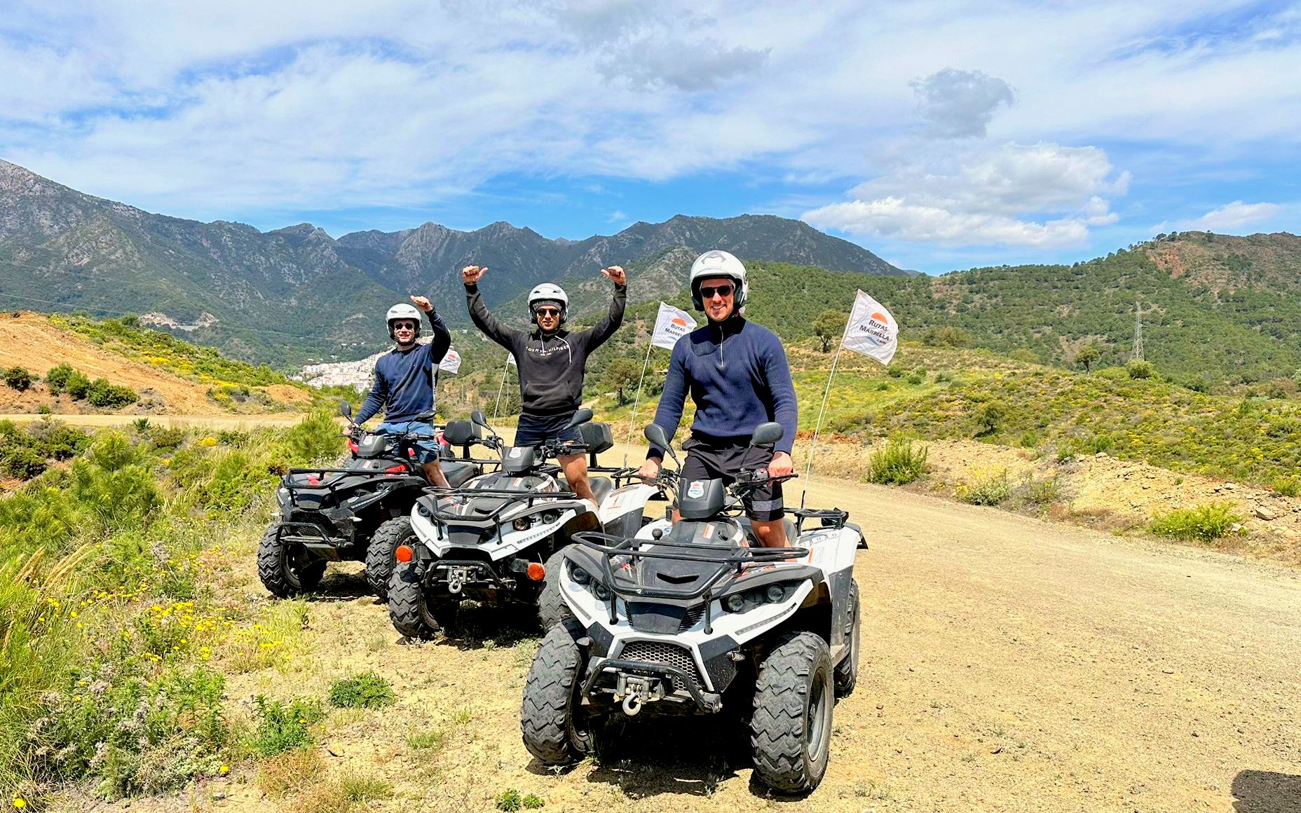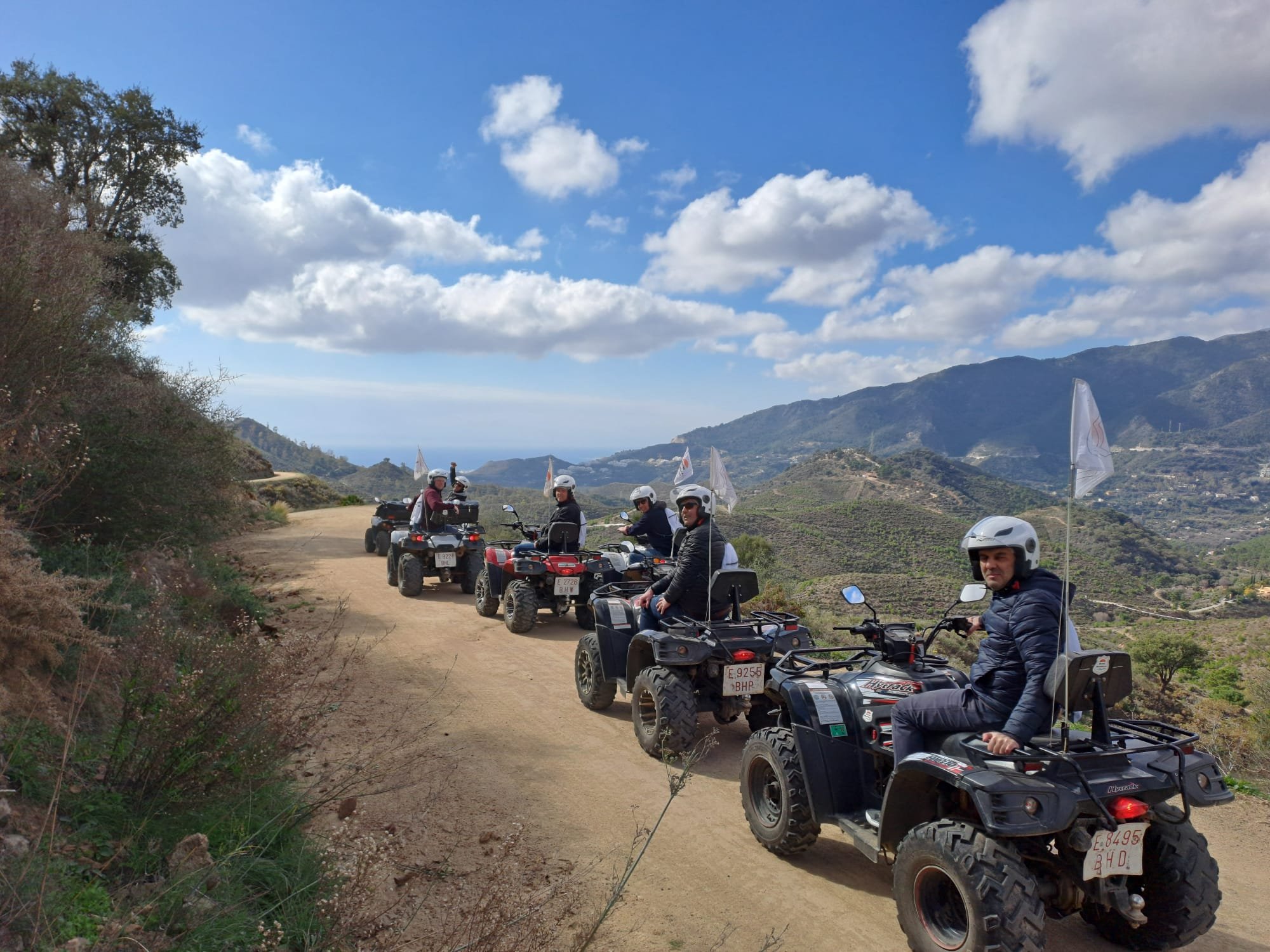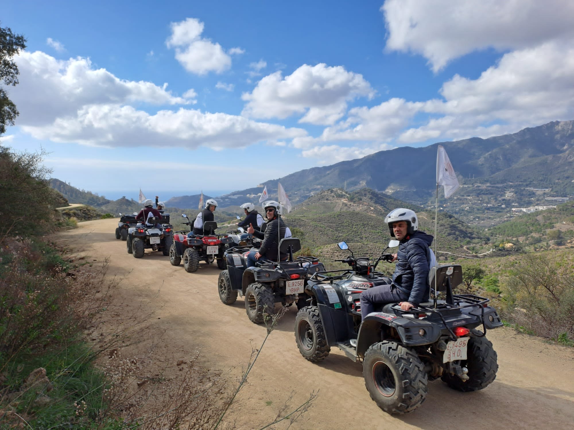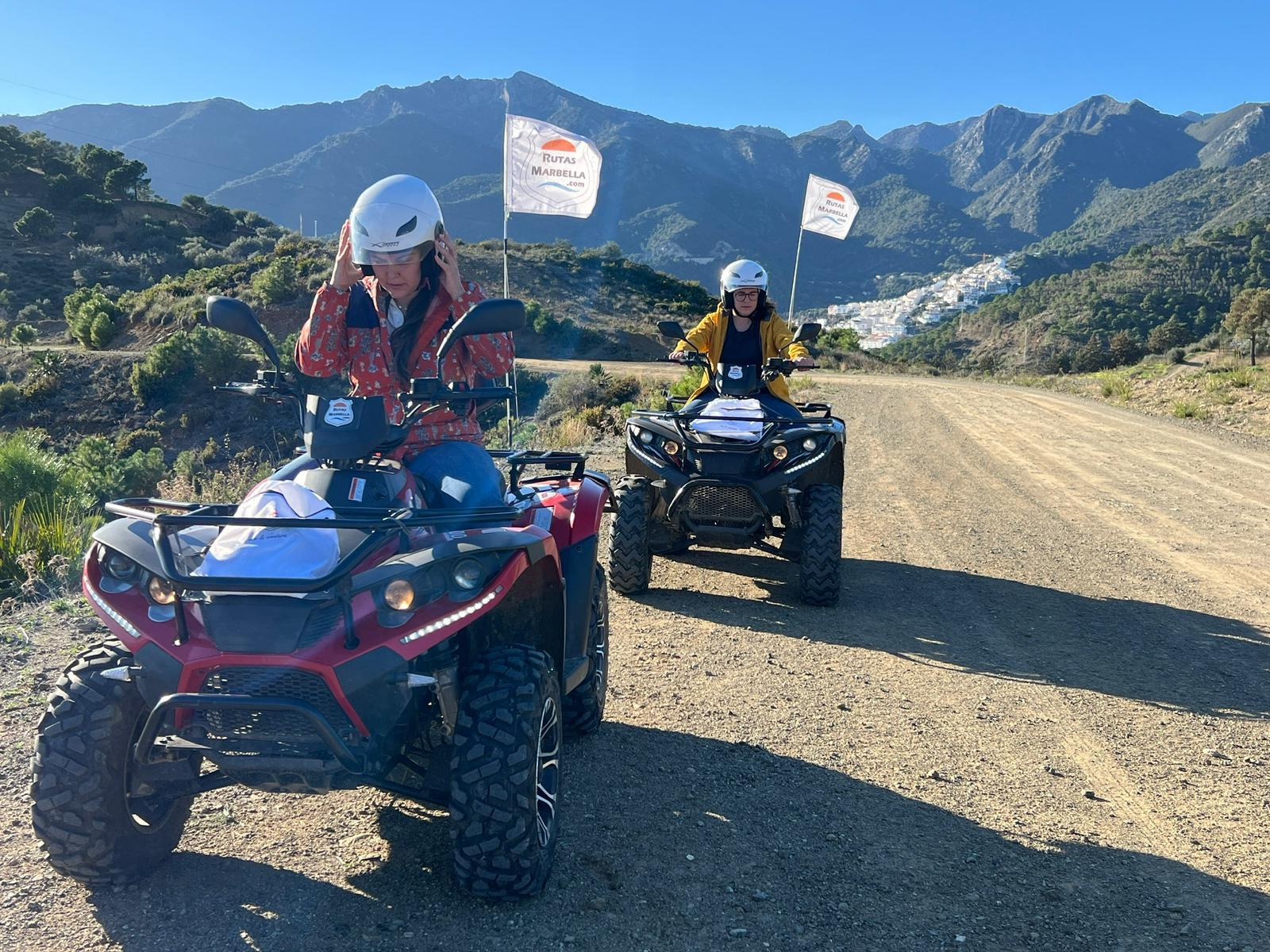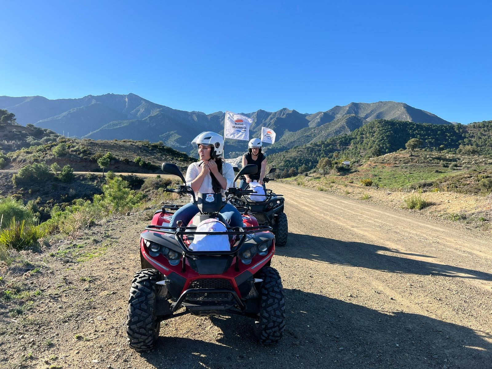 We'll meet 10 minutes before the route starts at Avenida General López Domínguez 4 in Marbella. Our team will teach you how to drive the ATV quad and explain everything you need to know about the active and passive safety elements. You will receive a helmet and water, and then the route begins!