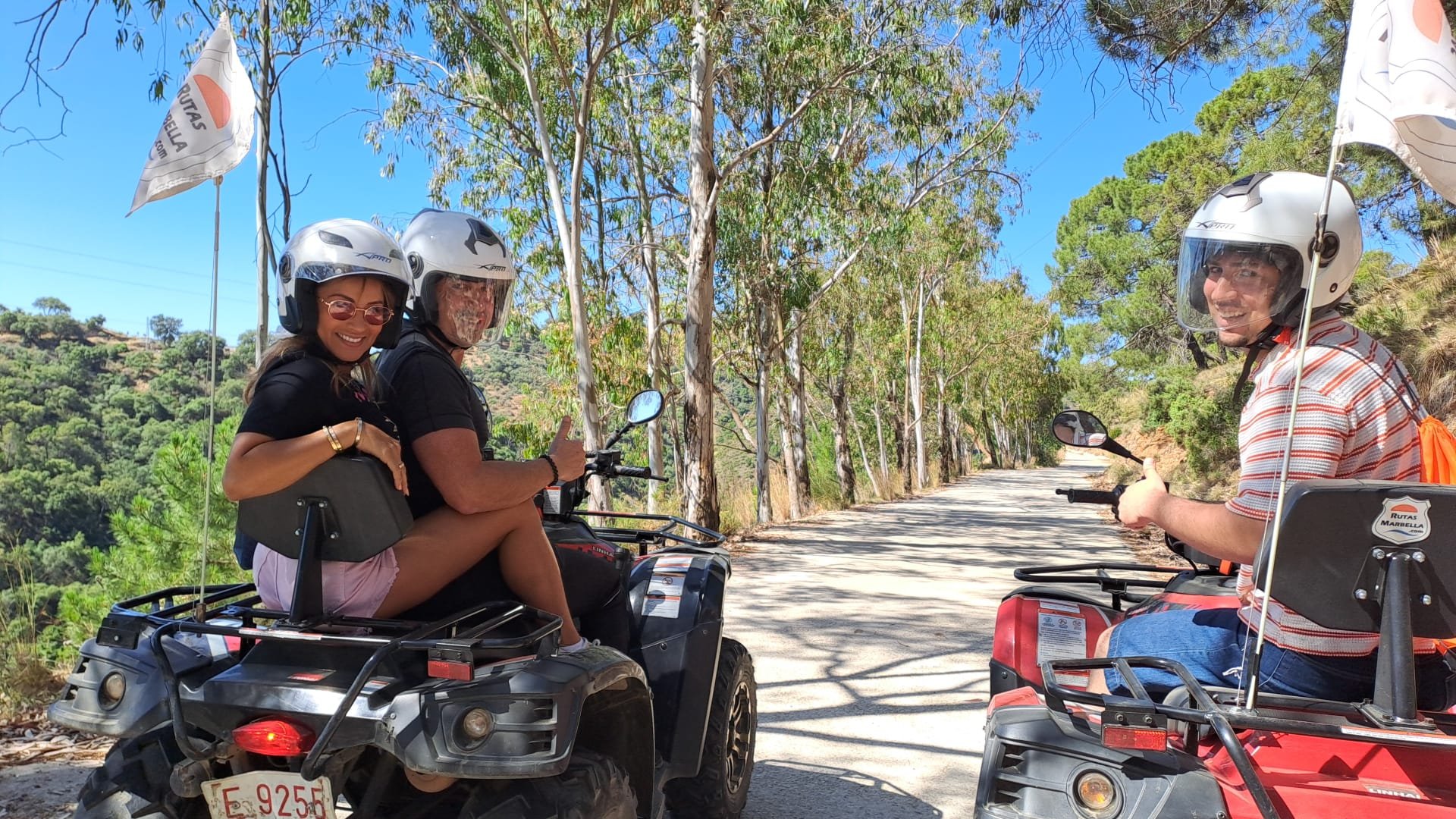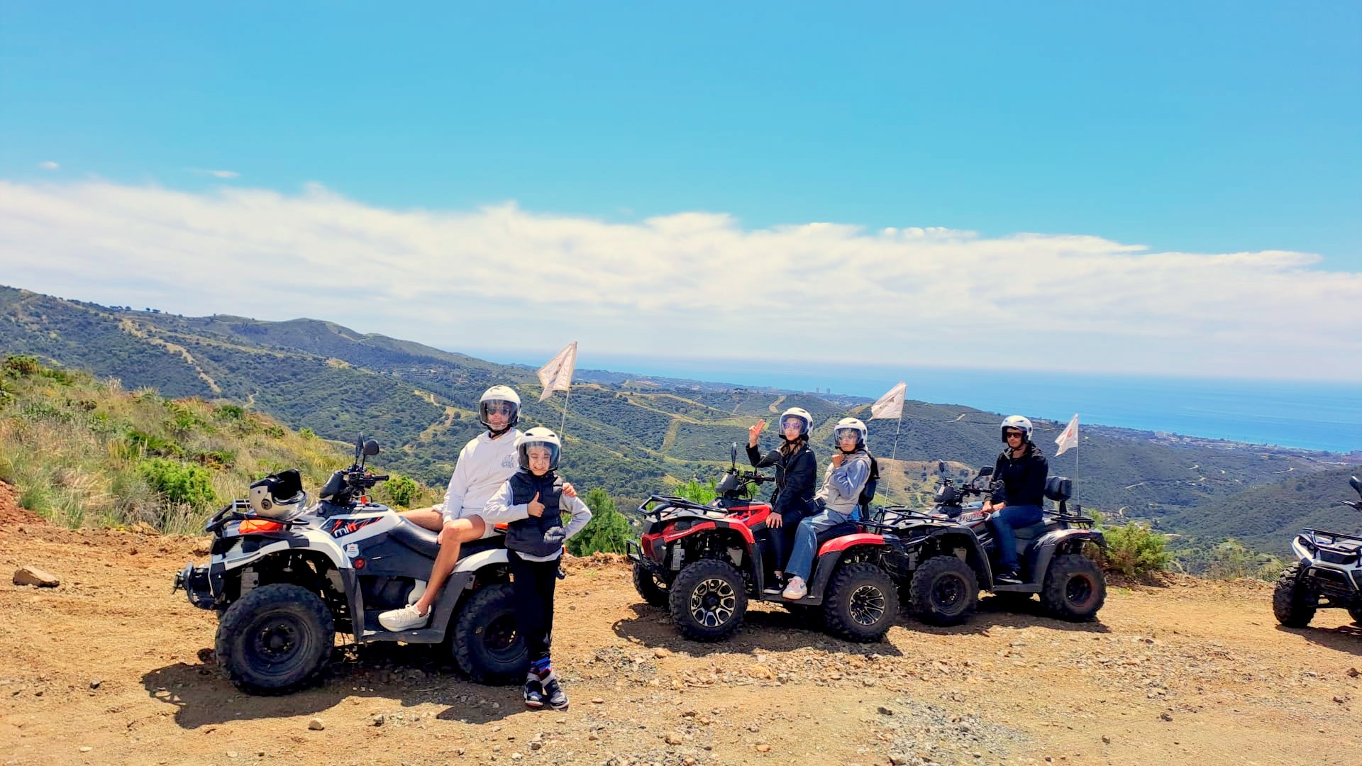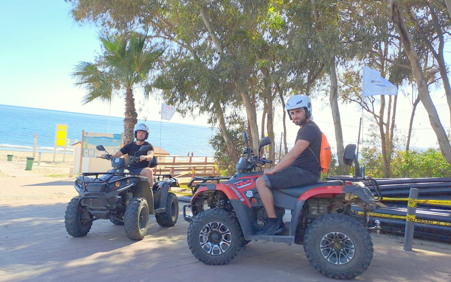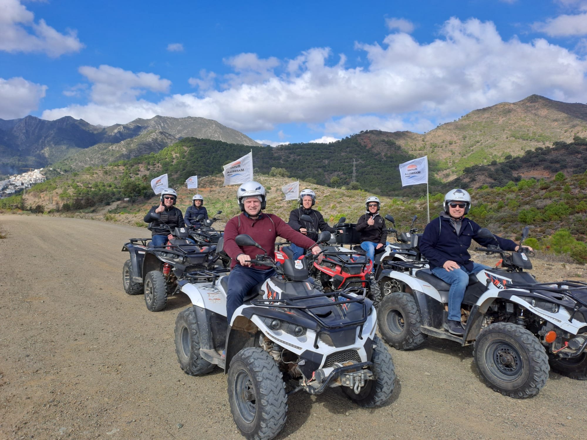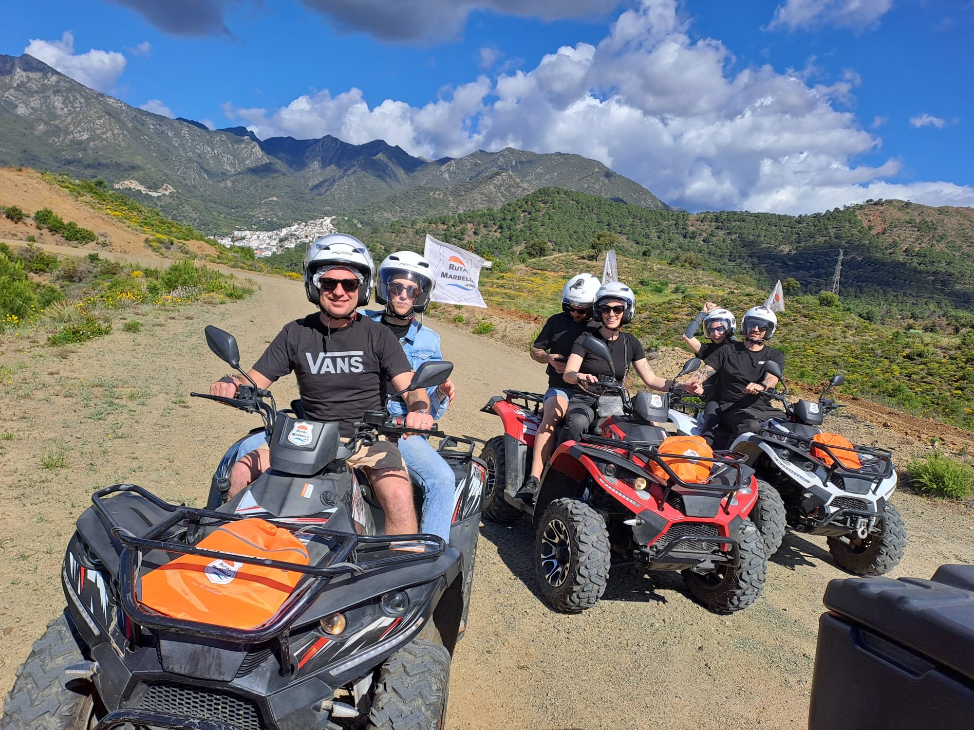 We'll meet 10 minutes before the route starts at Avenida General López Domínguez 4 in Marbella. Our team will teach you how to drive the ATV quad and explain everything you need to know about the active and passive safety elements. You will receive a helmet and water, and then the route begins!