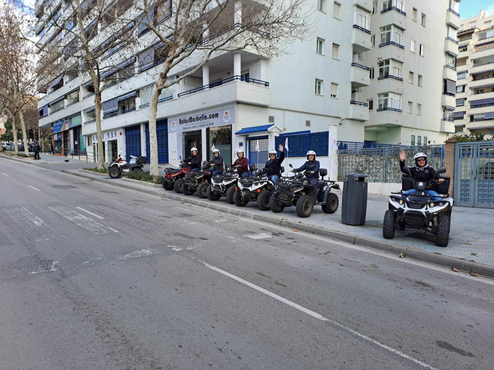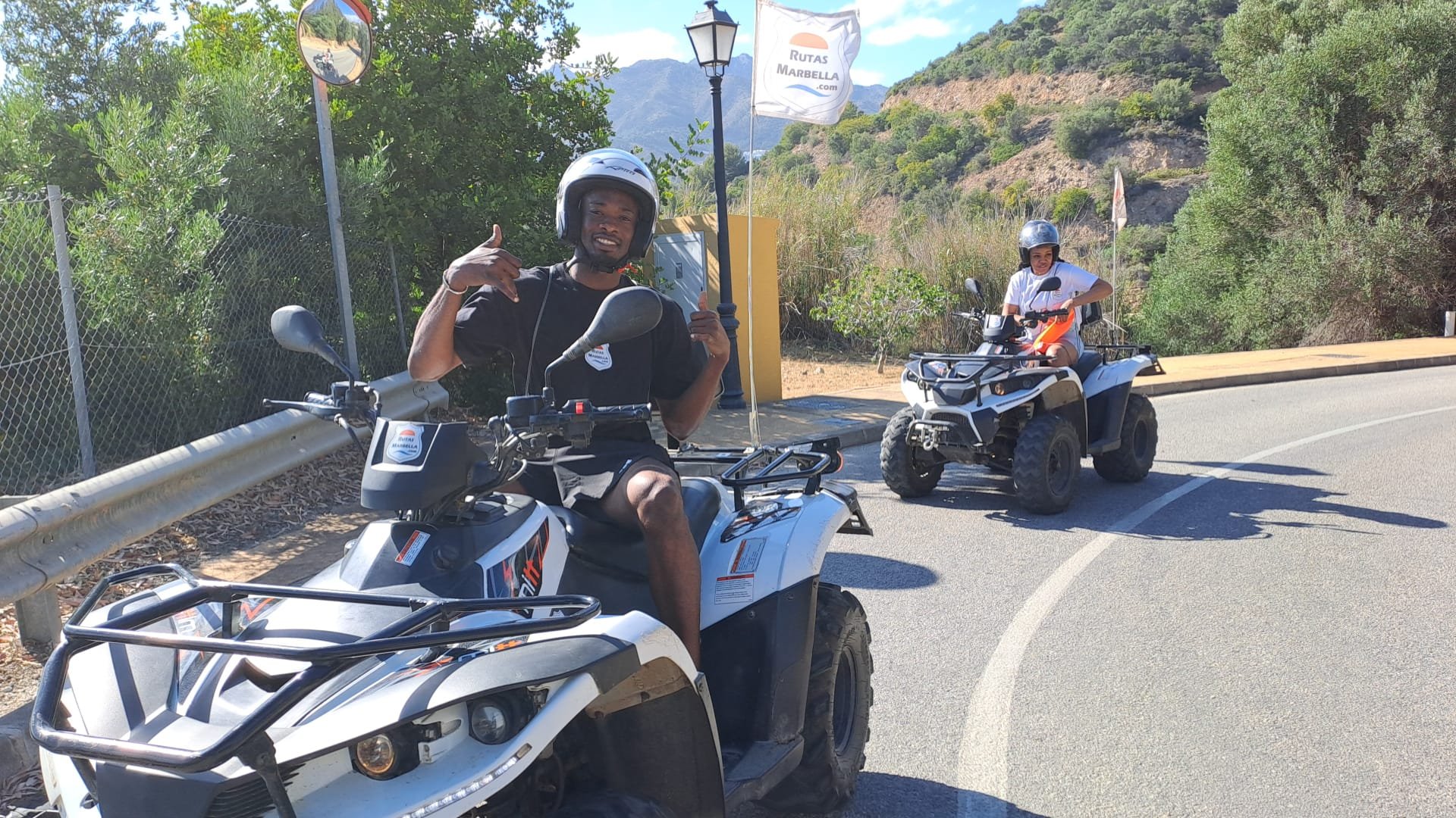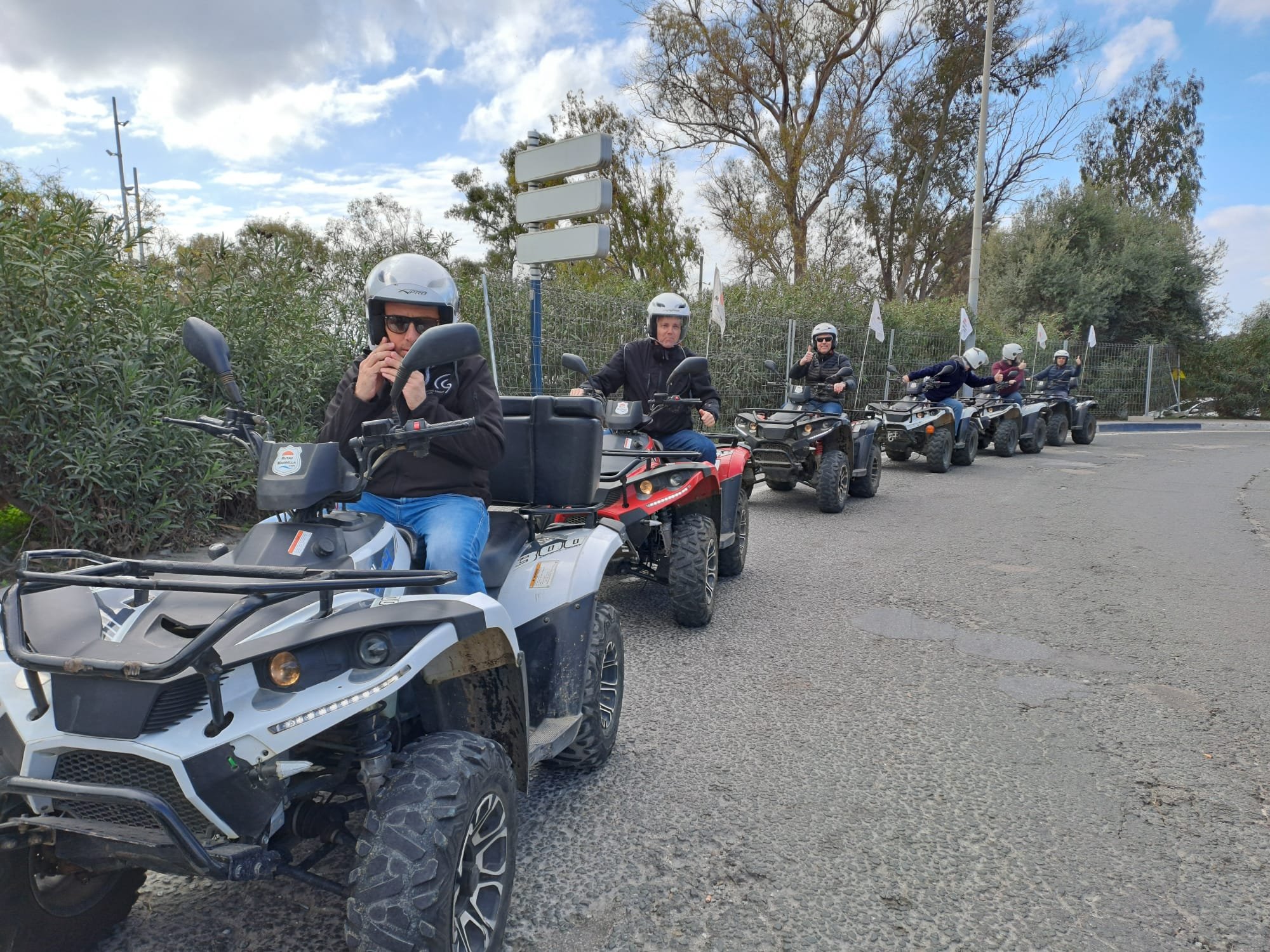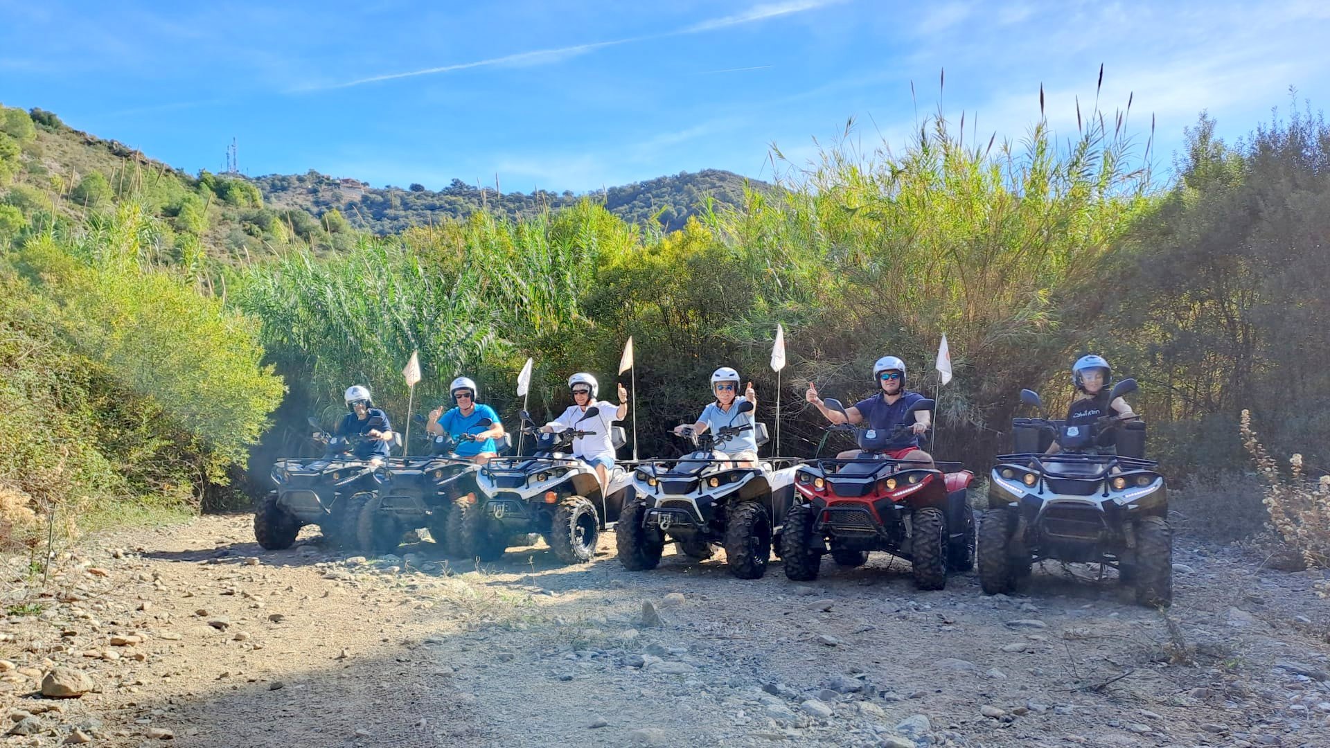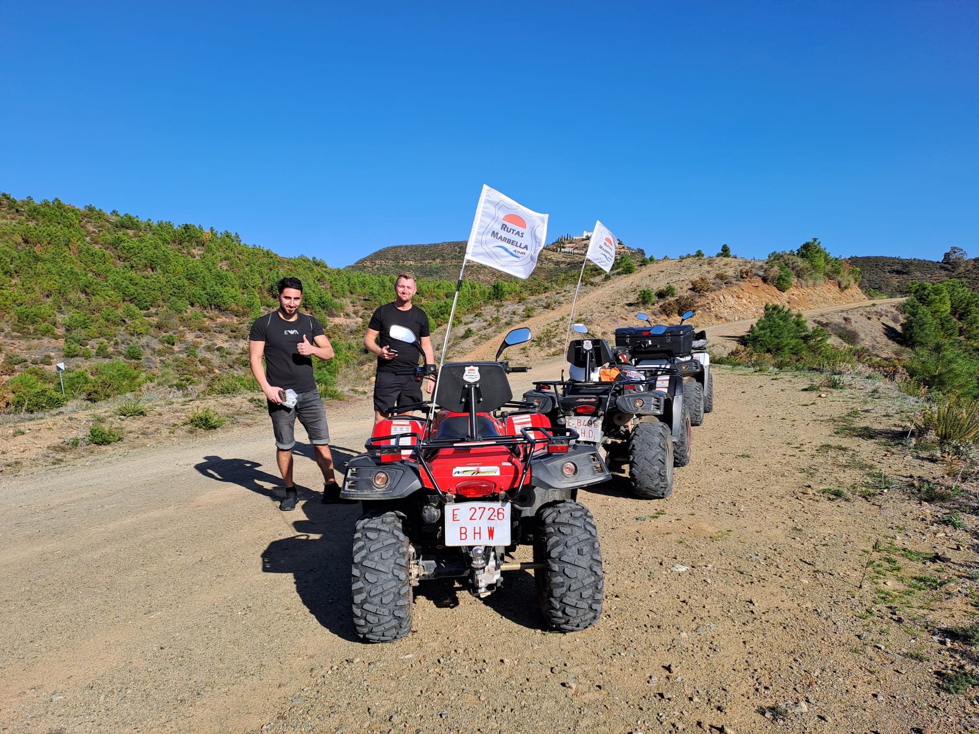 We'll meet 10 minutes before the route starts at Avenida General López Domínguez 4 in Marbella. Our team will teach you how to drive the ATV quad and explain everything you need to know about the active and passive safety elements. You will receive a helmet and water, and then the route begins!