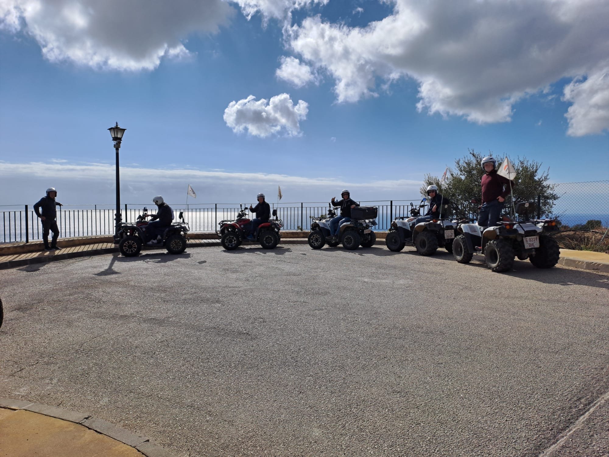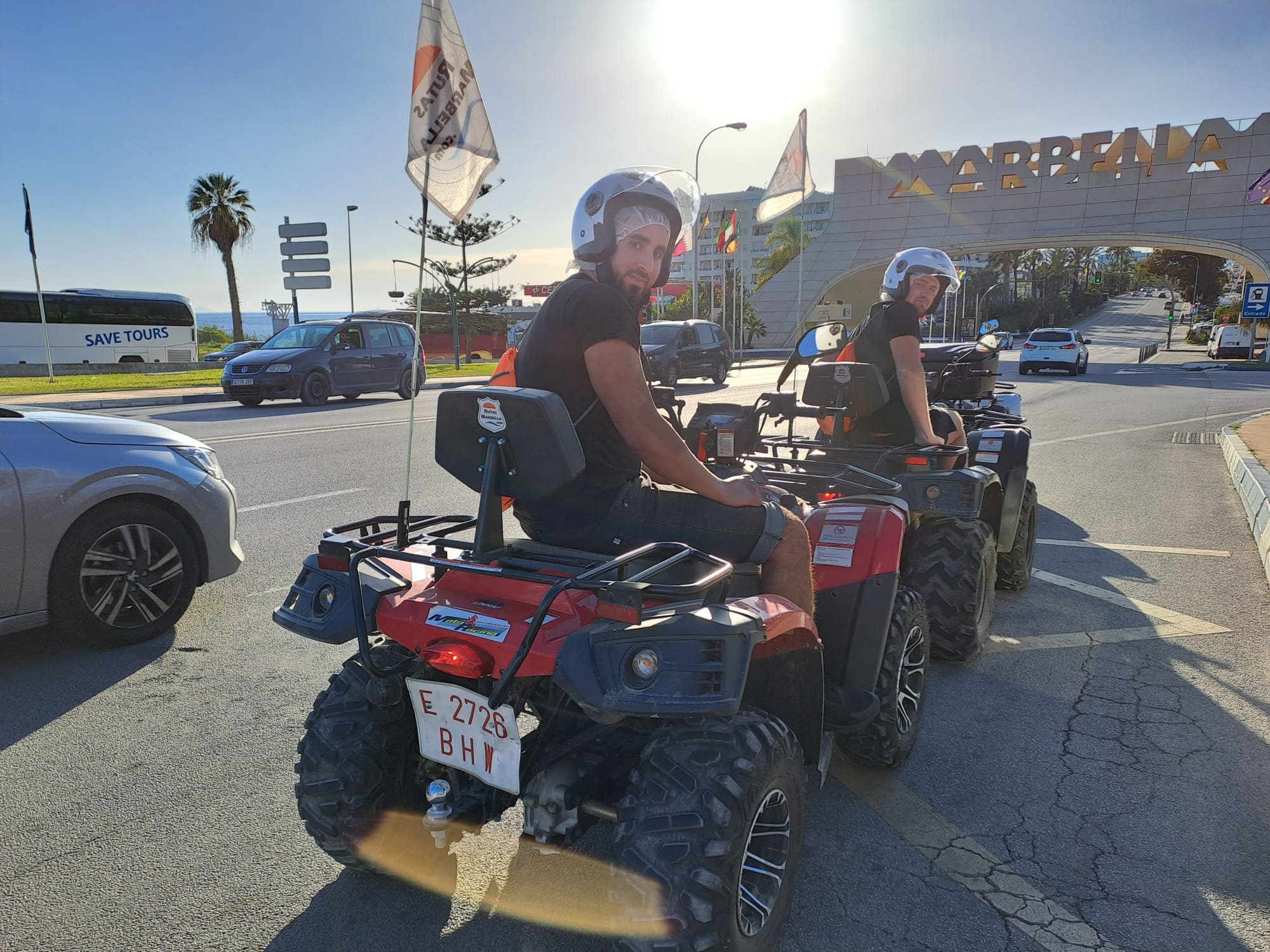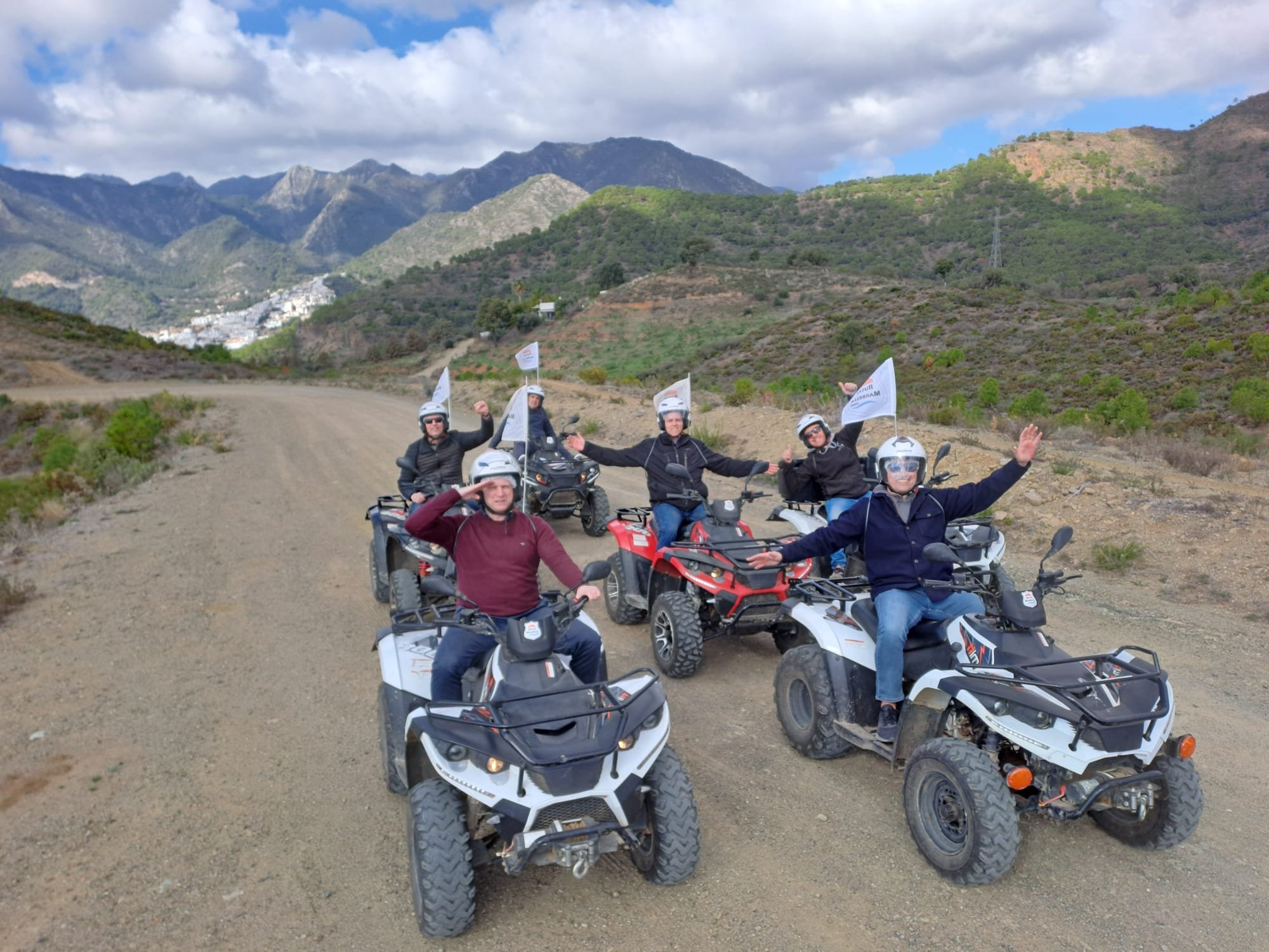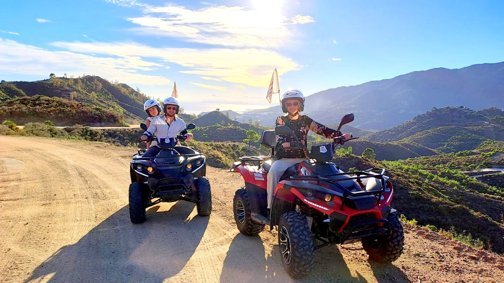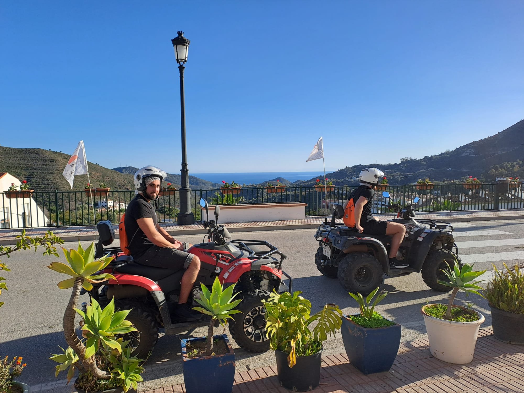 We'll meet 10 minutes before the route starts at Avenida General López Domínguez 4 in Marbella. Our team will teach you how to drive the ATV quad and explain everything you need to know about the active and passive safety elements. You will receive a helmet and water, and then the route begins!