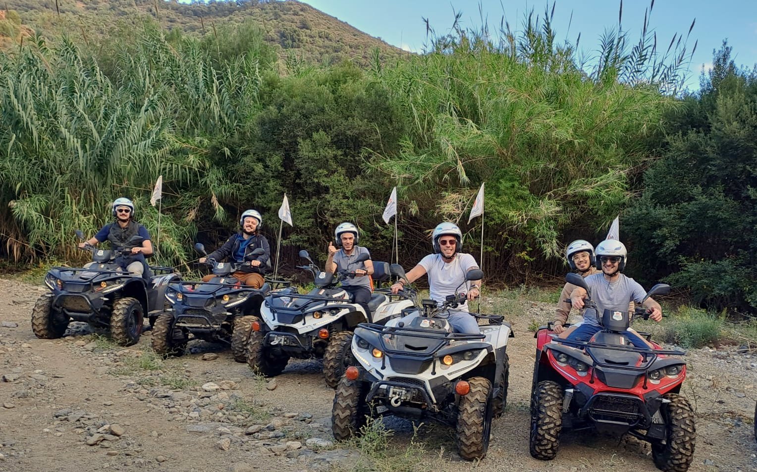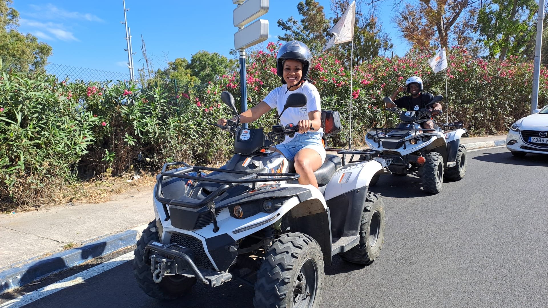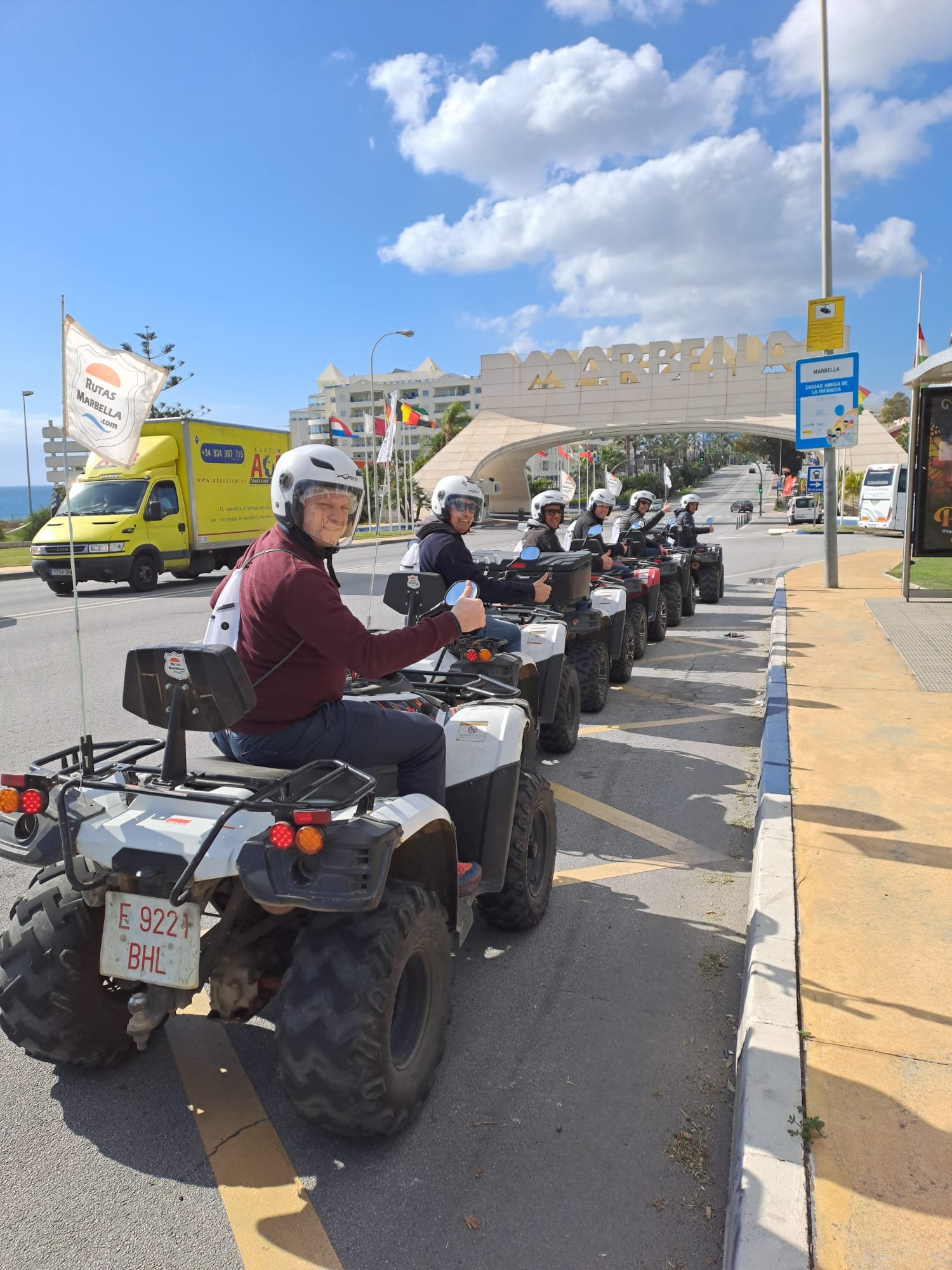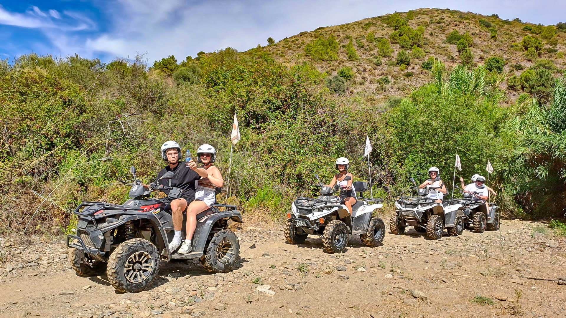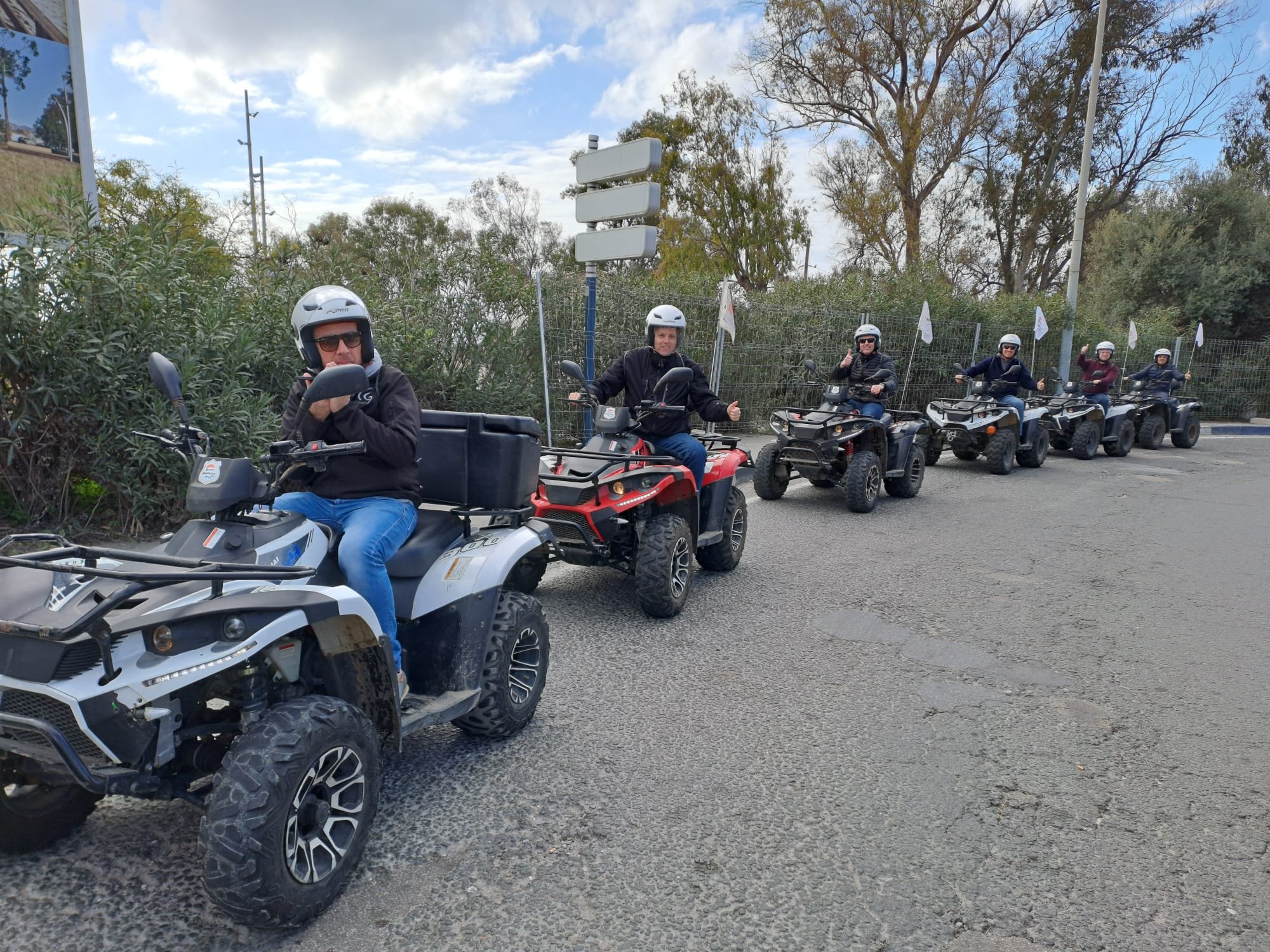 We'll meet 10 minutes before the route starts at Avenida General López Domínguez 4 in Marbella. Our team will teach you how to drive the ATV quad and explain everything you need to know about the active and passive safety elements. You will receive a helmet and water, and then the route begins!
